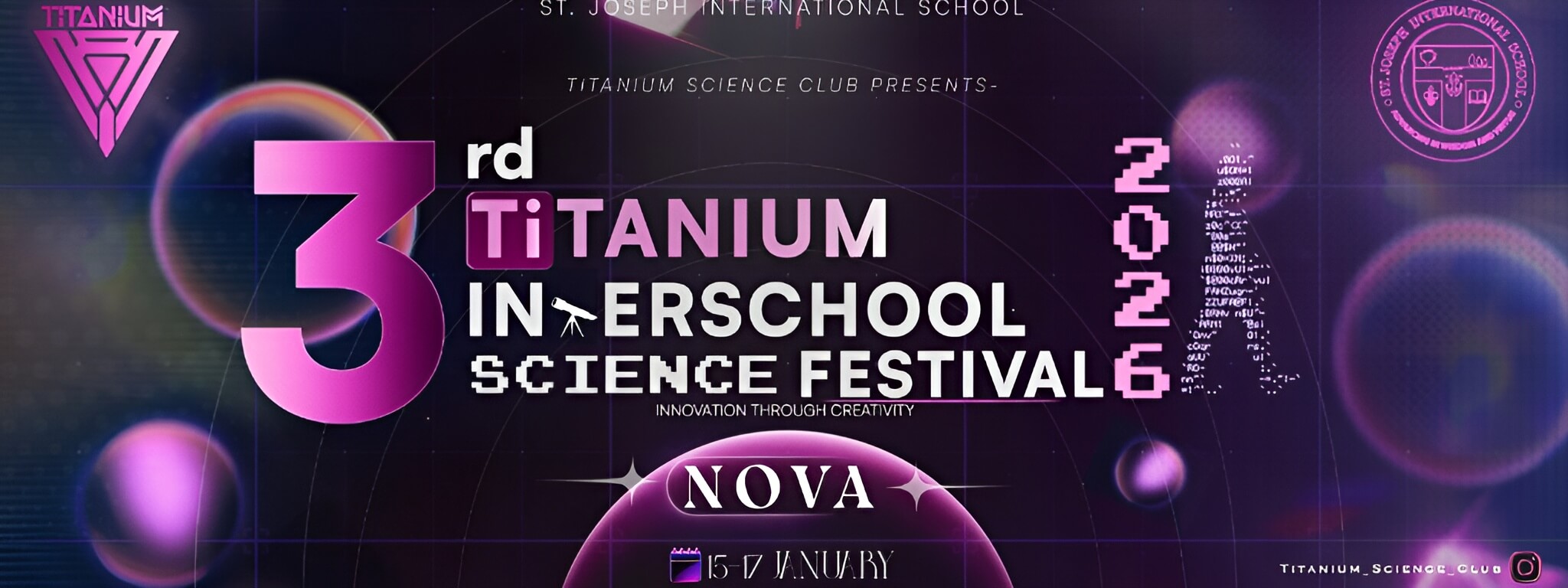 The 3rd Annual Titanium Science Fest 2026 is a three-day celebration of curiosity, innovation, and young scientific talent, held from January 15–17 at St. Joseph International School. Designed for students from Grades 3–12, the fest brings together some of the brightest minds to compete, collaborate, and explore science beyond textbooks.